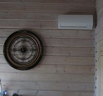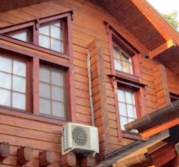 Когда мы решили установить кондиционер в деревянном доме, все нам говорили - да вы что, весь фасад испортите, это некрасиво. Но дышать в Pin Up жарой некомфортно. Когда мы сказали о проблема специалистам Байкал климат, они посоветовали спрятять кондиционеры в невидной части фасада. Оказывается, такое тоже возможно, наружный блок необязательно должен торчать в той же стороне, на которой установлен внутренний. С улицы ничего не видно, зато дома кайф.